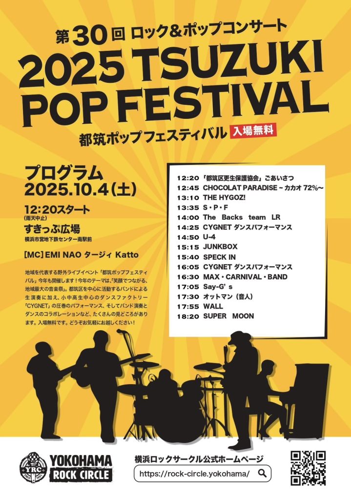 10/4(土)都筑ポップフェスティバル2025 2025年10月1日 最終更新日時 : 2025年10月1日 kodama いよいよ今週10/4(土)、都筑ポップフェスティバル2025開催です! スケジュールが少し変更になっていますのでご注意ください。 皆様のお越しをお待ちしております!